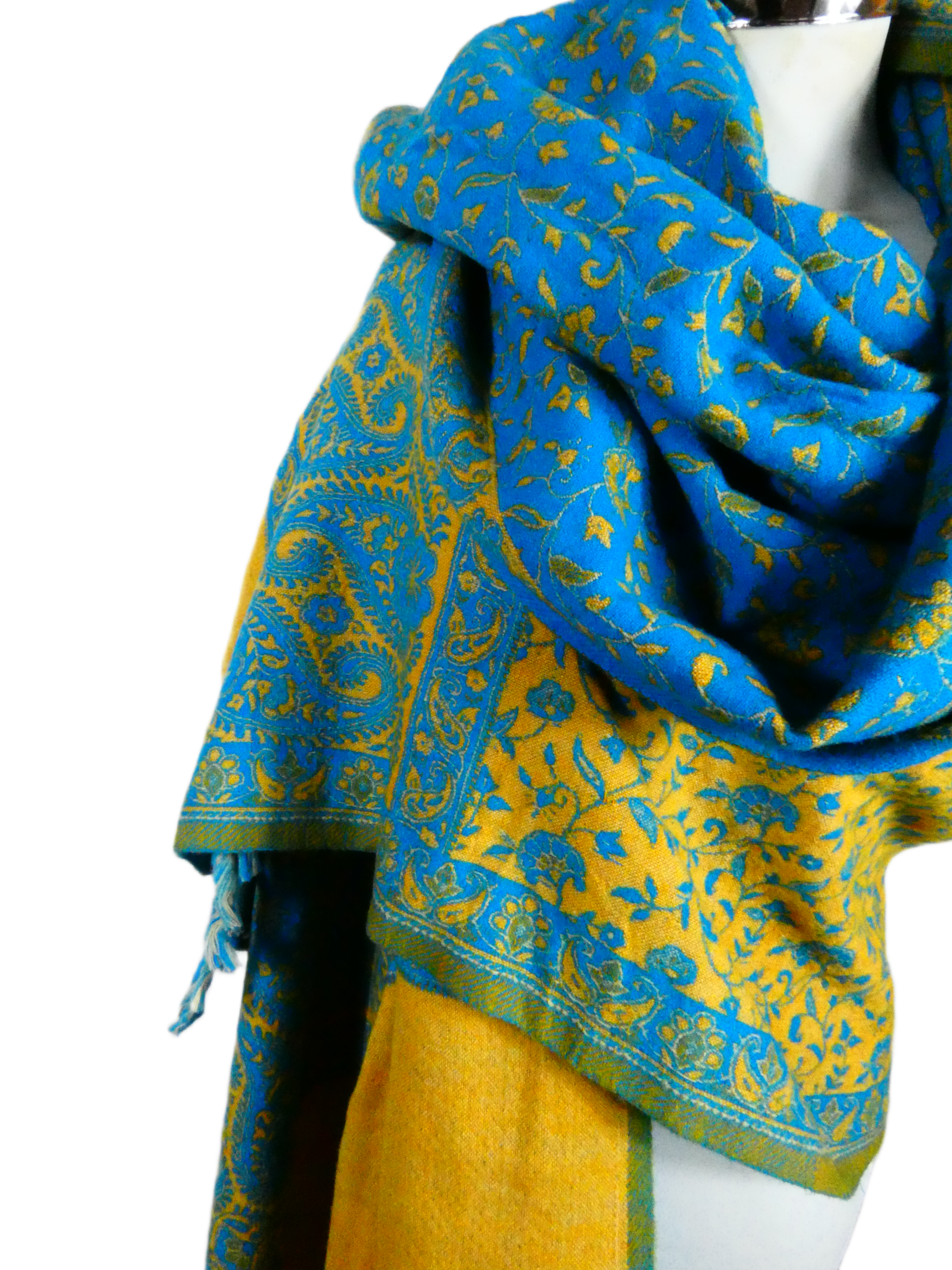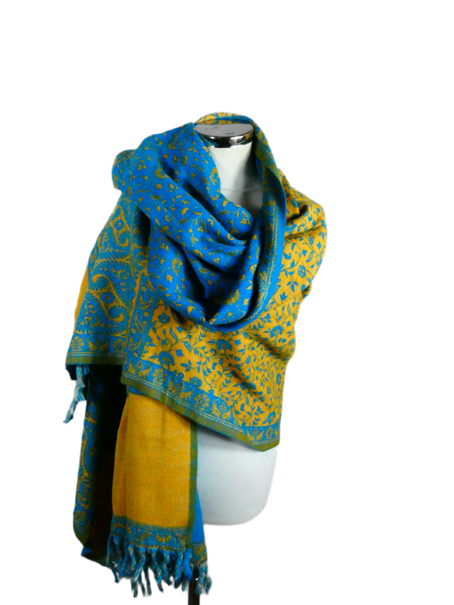 Yakwol Omslagdoek – Geel, Oker, Turquoise